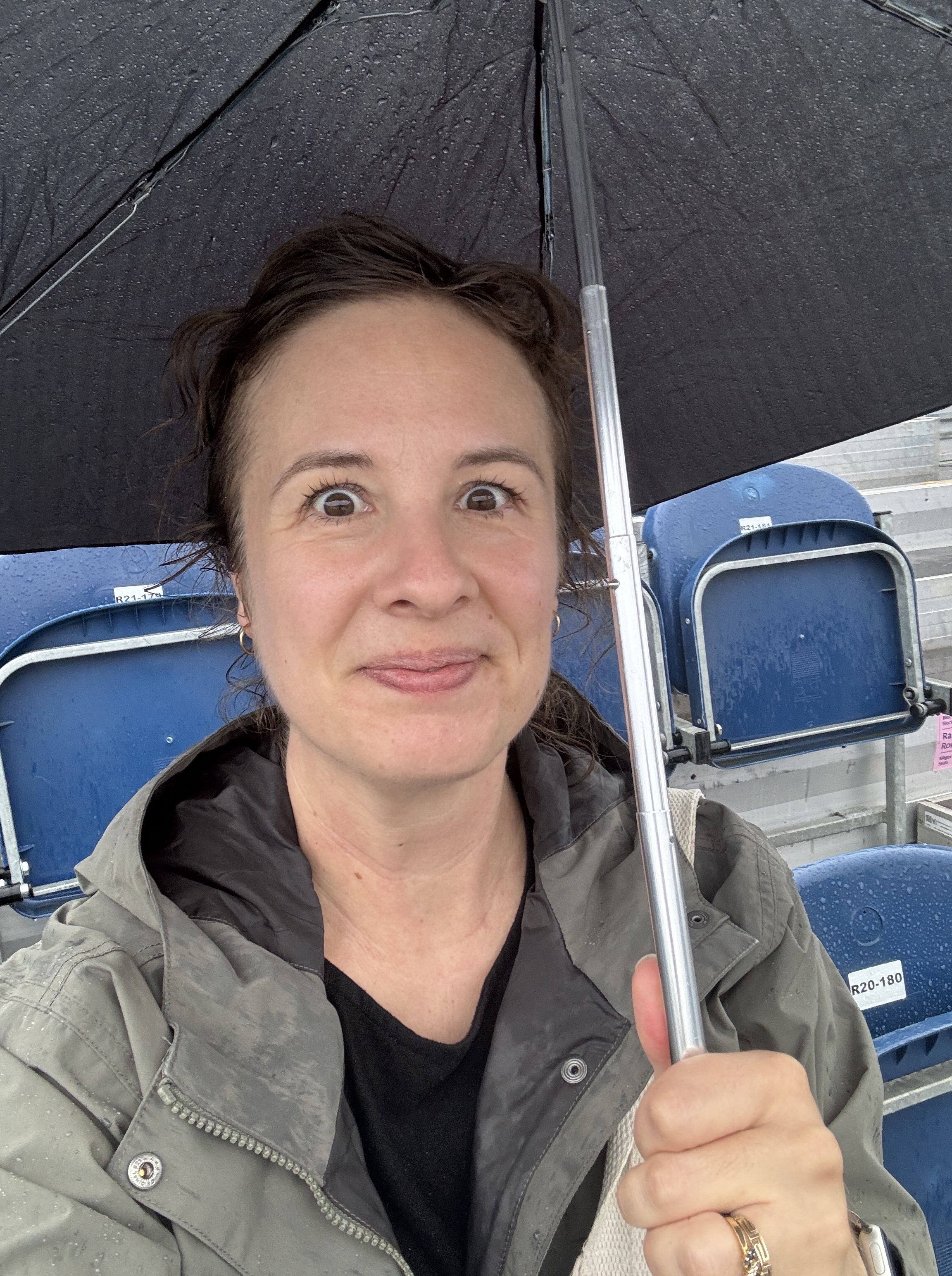 But we didn’t let the rain keep us down! Because we’re currently based in Oslo, we were well-prepared with rain gear. Yes, the grandstand was wet, but otherwise I found the whole operation to be flawless. From the communication beforehand, to the airport signage and interactive stations, to the transportation and volunteers in coordinated outfits, it was an honor to get to witness it.